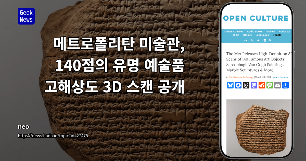 이번 공개는 예술 연구와 교육, 대중 접근성 확대에 기여하며, 디지털 아카이브 구축의 중요한 진전을 의미한다 뉴욕 메트로폴리탄 미술관이 140점의 유명 예술품을 고해상도 3D 스캔으로 공개하여, 온라인에서 누구나 세밀하게 감상할 수 있는 기회를 제공한다.